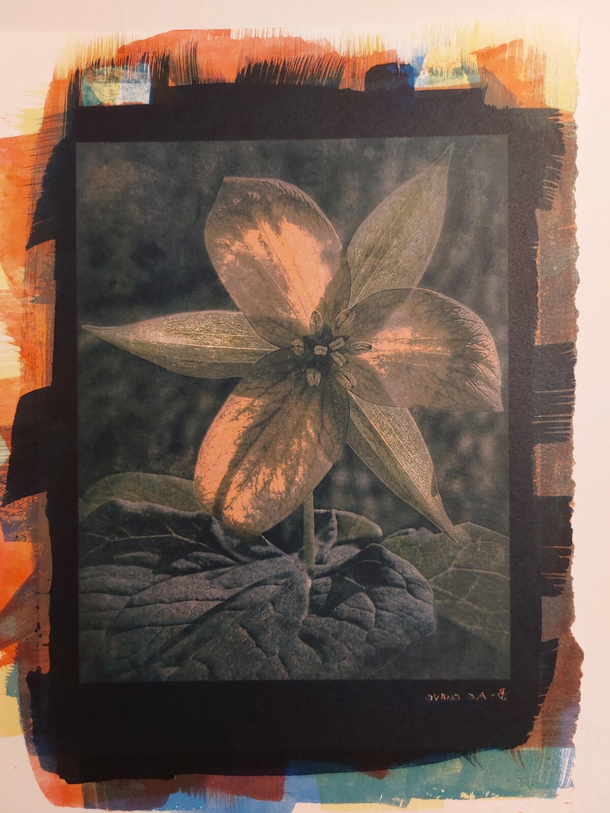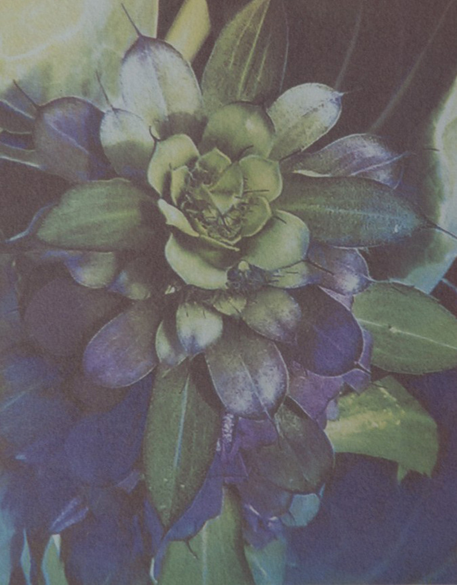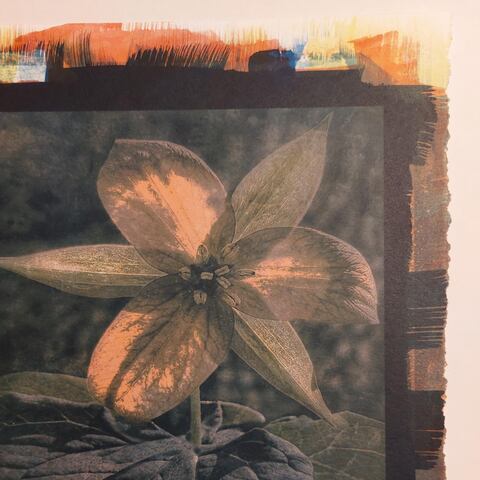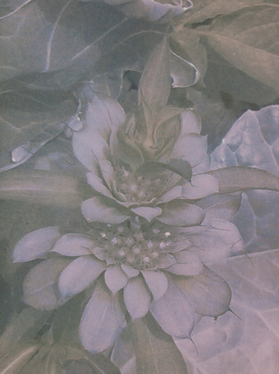 Flora is an ongoing fascination with wild and domesticated flowers, from backyards and ditches to prairie meadows, from botanical gardens and arboretums to arboreal forests and alpine meadows and deserts. When I say ongoing, I think what I mean is an obsession that is lifelong. The prints in this series are tri-colour gum and gum bichromate over cyanotype.